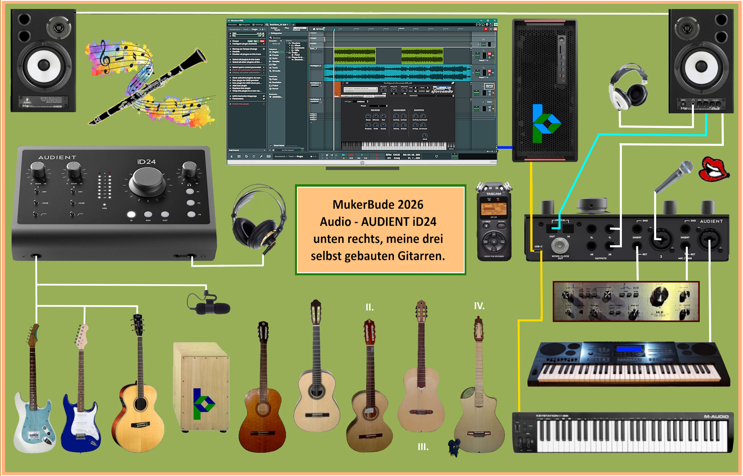 | Unsere Erfahrung mit Audio-Interfaces der vergangenen 25 Jahre | Erfahrungsbericht | Audient iD24 - AMAZONA hat es ausführlich getestet | Testbericht | MukerBude - Kaufempfehlungen <100 und ~400 Euro | MuBu 2026 | AUDIENT herausragender Sound & intelligente Schaltwege | AUDIENT iD24 | MOTU AudioInterfaces - Floppt im Magazin HomeRecording | MOTU M4 | - MukerBude - Review- AudioInterface MOTU M4 | MuBu Review | Focusrite - Scarlett der 4. Gen. mit ordentlichem Klang | Scarlett 16i16 | Solid State Logic - Guter Sound - Es fehlen Anschlüsse | SSL 12 | Universal Audio - Von den Programmierern des E-MUm | UA Volt 476P |
